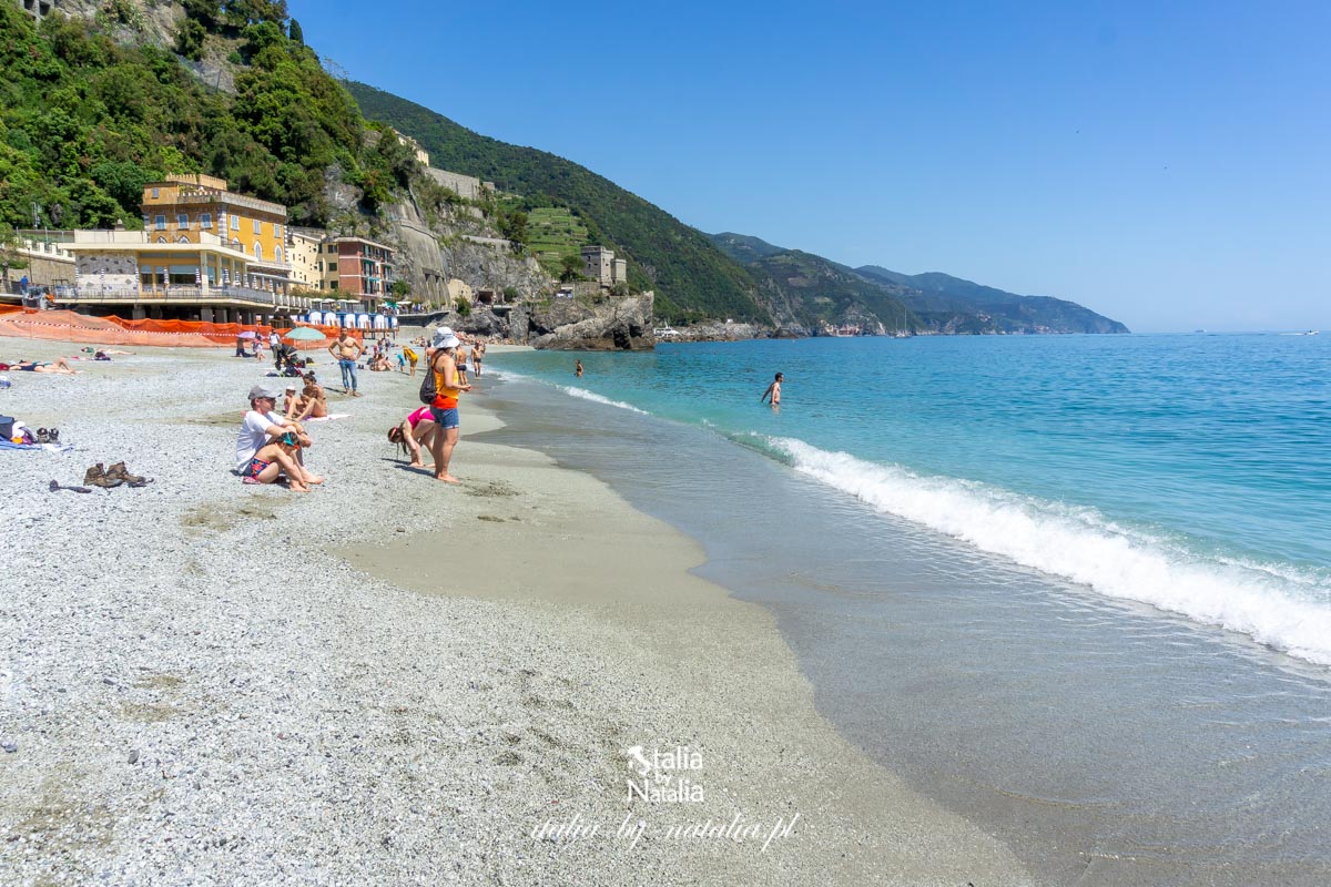 Wiele źródeł podaje informacje, jakoby plaże w Monterosso były piaszczyste. Nie zgadzam się z tym, są piaszczysto-żwirowe, szczególnie przy wejściu do wody. Piasek nie jest biały ani nawet żółty, jest szary, natomiast położenie plaż w otoczeniu skał i zielonych gór jest bardzo urokliwe.