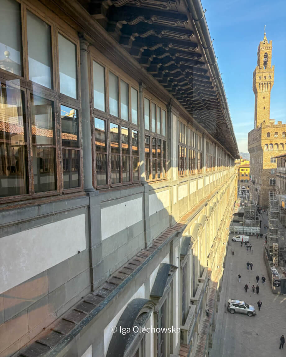 W ramach jednego biletu można połączyć zwiedzanie Galerii Uffizi z przejściem Korytarzem Vasariego, udostępnionym ponownie zwiedzającym w 2025 roku po wieloletniej przerwie.