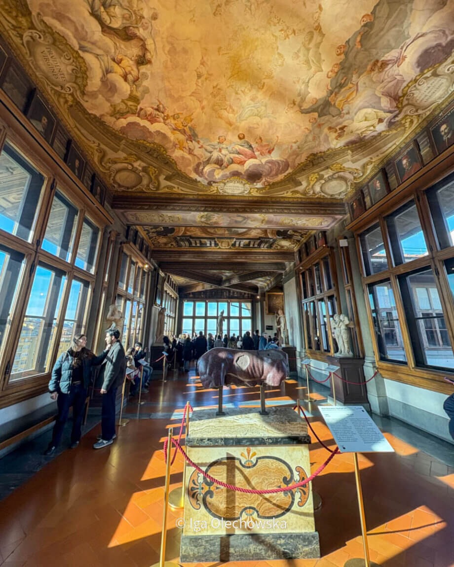 Gdy dynastia wygasła w XVIII wieku, to wszystko mogło zostać sprzedane i rozgrabione, gdyby nie miłość do Florencji jednej kobiety. Anna Maria Luisa de’ Medici – ostatnia z rodu – przekazała kolekcję miastu z zaznaczeniem, że ma ona służyć dobru publicznemu, a także przynosić splendor miastu oraz całej Toskanii. Dzięki tej decyzji Uffizi stały się jednym z pierwszych muzeów otwartych dla wszystkich. Galeria zachwyca nie tylko niezwykłą liczbą arcydzieł, lecz także ogromną skalą samego budynku. Podczas pierwszej wizyty łatwo poczuć lekki zawrót głowy – bogactwo sztuki, przestrzeni i historii potrafi naprawdę przytłoczyć.