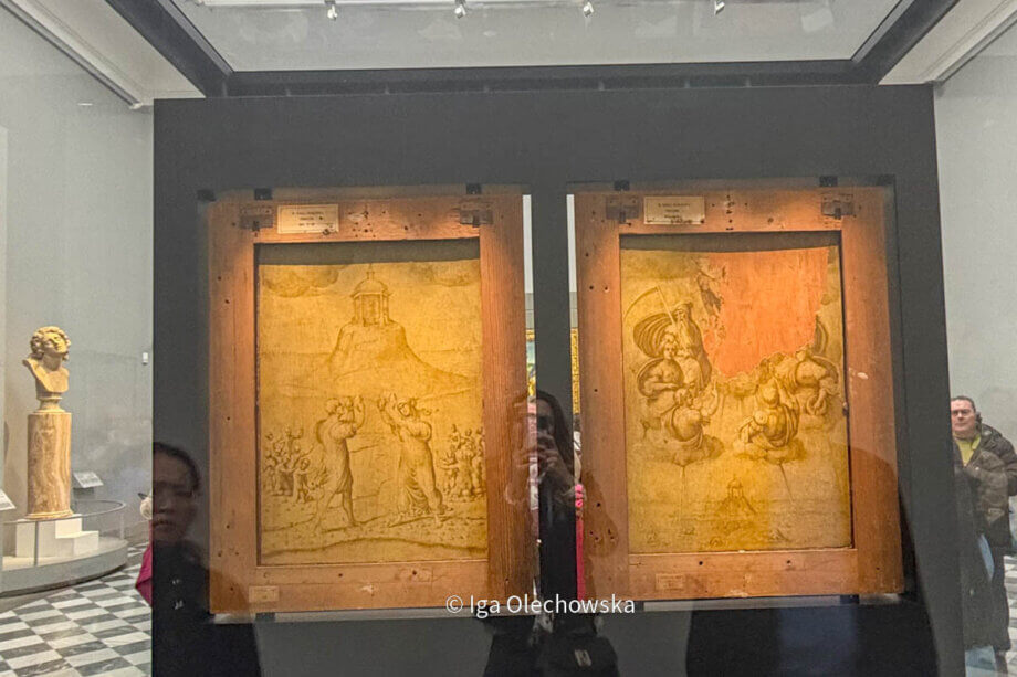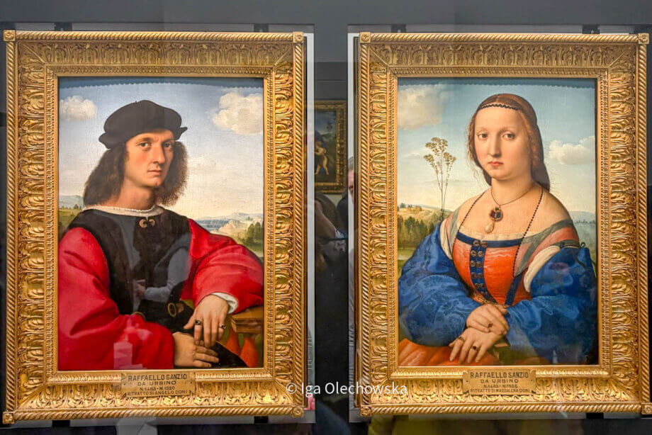 Aktualizacja marzec 2026: obrazy zostały przeniesione do Palazzo Pitti, a w ich miejsce wystawiono „Portret papieża Leona X z kardynałami Giulio de’ Medici i Luigi de’ Rossi” pędzla Rafaela.