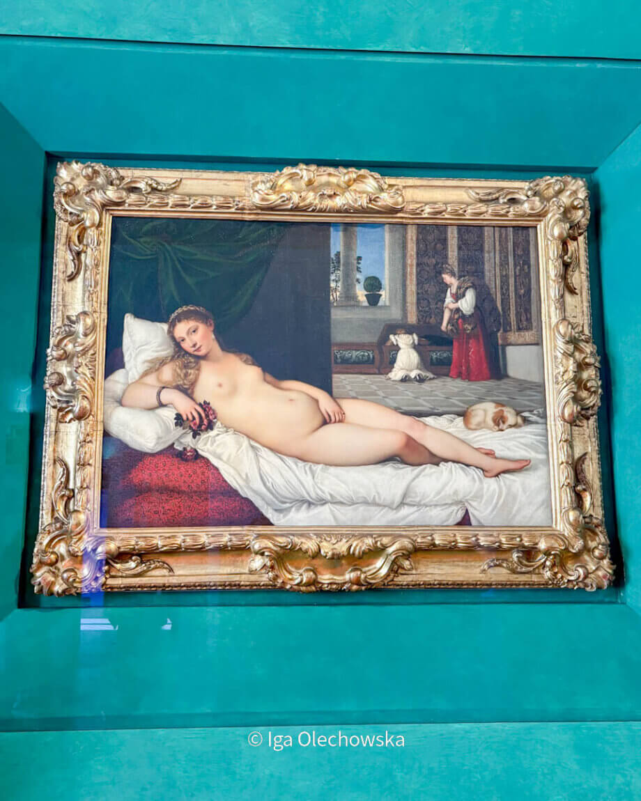 „Wenus z Urbino” trafiła do Florencji w 1631 roku jako część spadku po Vittorii della Rovere. Dzieło tradycyjnie przypisywane jest Tycjanowi i datowane na 1538 rok. Obraz przedstawia leżącą postać kobiecą, zgodną z ikonograficznym typem tzw. „Wenus wstydliwej”. Od XVIII wieku podejmowano liczne próby identyfikacji modelki, która mogła pozować artyście.