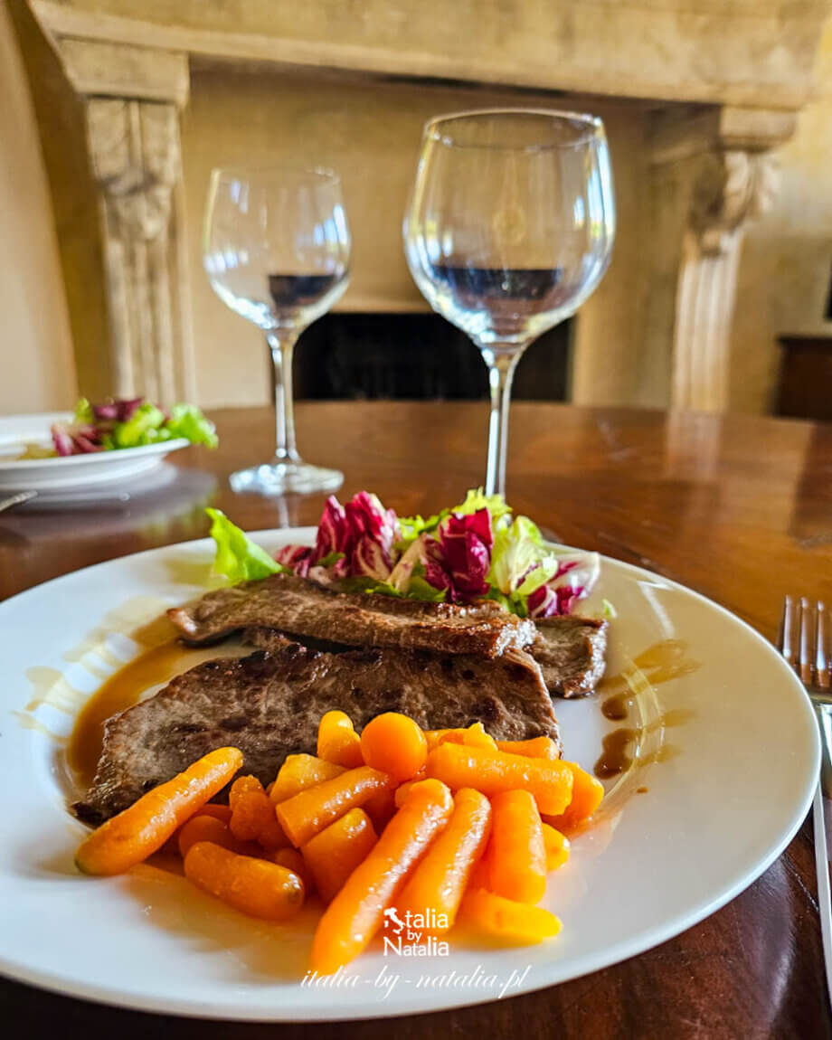 Otrzymaliśmy siatkę, w której znajdowała się butelka soku wyciśniętego z pomarańcz, świeżutkie bułki, cornetti, kawałek sera, szynka parmeńska, domowej roboty konfitury, masło, dwa małe omlety z wiejskich jajek oraz dwa jogurty naturalne, a w osobnych słoiczkach drobno pokrojone truskawki, na które o tej porze roku w północnych Włoszech jest sezon. Wszystko świeże i pyszne. Ciepłe posiłki przygotowywaliśmy najczęściej we własnym zakresie, bazując na zakupach robionych w okolicznych sklepach i na bazarach.