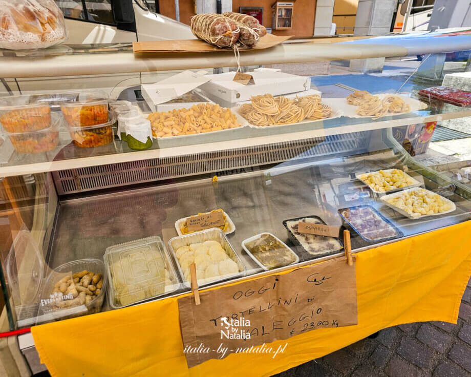 Totalnie nieturystyczne miasteczko Sommacampagna skrywa kilka lokali gastronomicznych, ale tym, co mnie najbardziej zauroczyło jest targ, który odbywa się w piątki od rana do około południa. Co można na nim znaleźć? Odzież i bieliznę, kwiaty cięte oraz sadzonki, warzywa i owoce, ale przede wszystkim sery, wędliny, mięso i domowej roboty wypieki oraz pastę. Dla siebie wybrałam tortelli di zucca, czyli tradycyjne dla tego obszaru pierożki nadziewane dynią, a także kluseczki gnocchi.