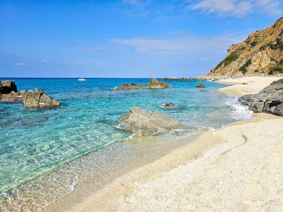 Drugim miejscem zachęcającym do spaceru jest Scogli di Riaci, podobno piękna plaża ze wspaniałymi formacjami skalnymi i widokiem na Tropeę. Znajduje sie pomiędzy S.Domenica a Tropeą. Ktoś umieścił ją wśród najpiękniejszych plaż Kalabrii (nie pamietam kto, a nie chce mi się szukać). Z centrum Tropei wg. Google to ok. 45 min. spacer, z S. Domenica jest bliżej. Tam z kolei postanowiłam odpuścić i w ogóle zrezygnowałam, bo byliśmy tylko parę dni.