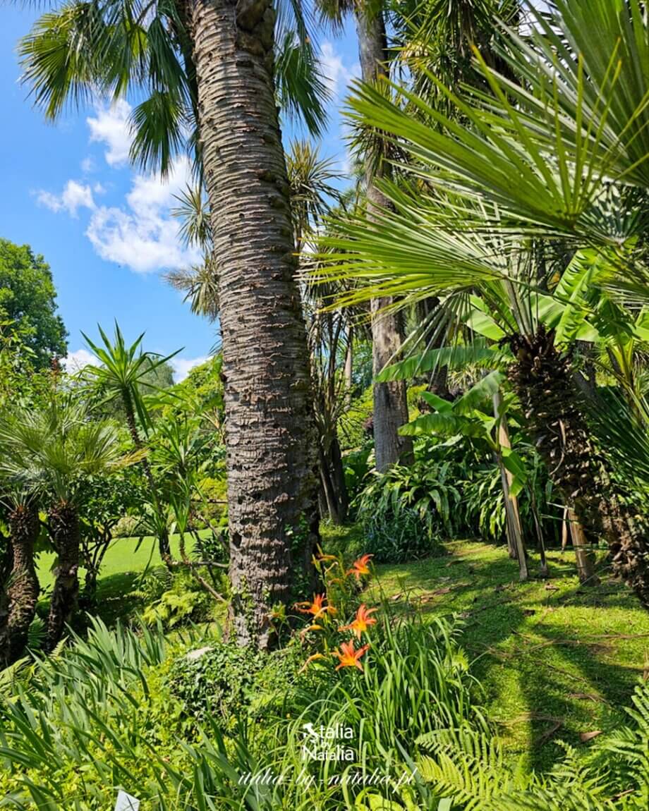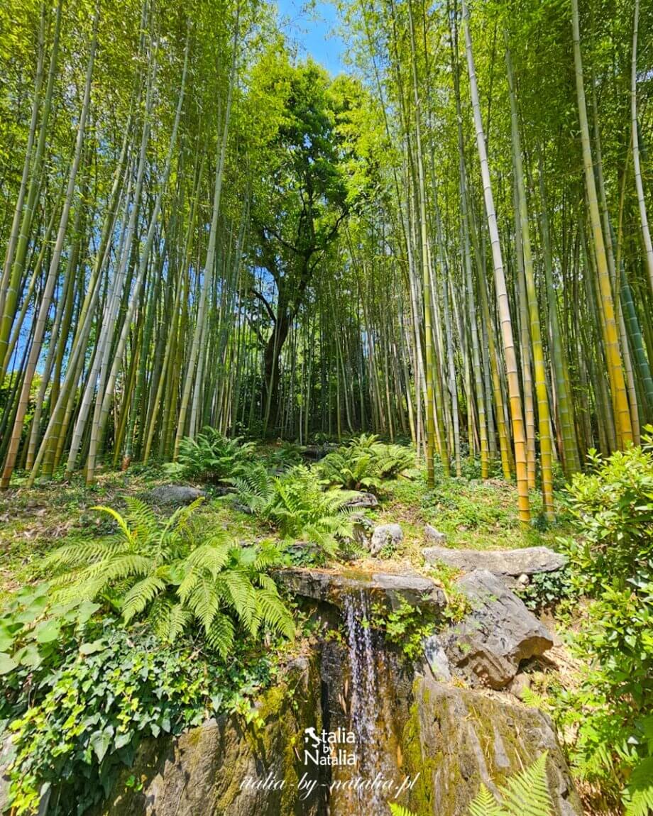 Spacer zaczyna się przy samej willi, skąd ścieżki prowadzą na boki oraz w górę przez kolejne tarasy. Po drodze pojawiają się miejsca, które na długo zapadają w pamięć. Jednym z nich jest Valle delle Felci – dolina paproci, czyli zacieniona część ogrodu wypełniona bujną roślinnością i ogromnymi paprociami drzewiastymi, gdzie powietrze jest wyraźnie chłodniejsze i wilgotniejsze niż na słonecznych tarasach. Kilka minut spacerem dalej krajobraz zmienia się ponownie, gdy ścieżka prowadzi przez ogród bambusowy, inspirowany ogrodami Dalekiego Wschodu. Wysokie łodygi bambusów tworzą zielony dach nad głową, a ich delikatny szelest nadaje temu miejscu zupełnie inny rytm.