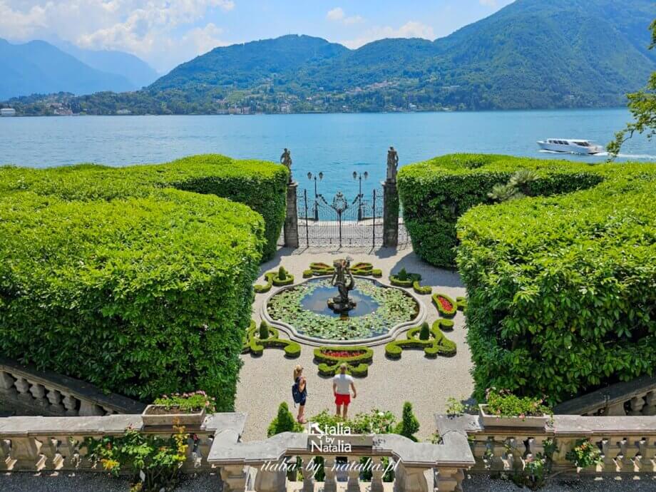 Poranne, czerwcowe słońce świecące znad miasteczka Bellagio rozświetlało frontową elewację dwupiętrowej Villi Carlotta, gdy otworzyła się boczna brama niemo zachęcająca gości do wejścia. Już na samym początku zachwyciła mnie okrągła fontanna otoczona wysokimi żywopłotami, usytuowana dokładnie naprzeciw głównej bramy, misternie wykutej z żelaza. Tędy niegdyś wiódł podjazd pod monumentalne, wysokie schody prowadzące do frontowego wejścia do willi. Dziś starannie wypielęgnowana zieleń otaczająca imponującą bryłę pałacu – bo z pałacem tak naprawdę mamy do czynienia – zabiera zwiedzającego w fascynującą podróż do przeszłości.