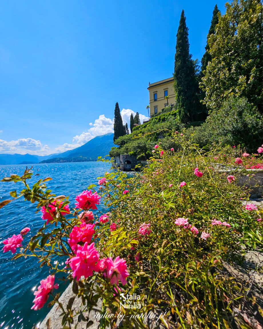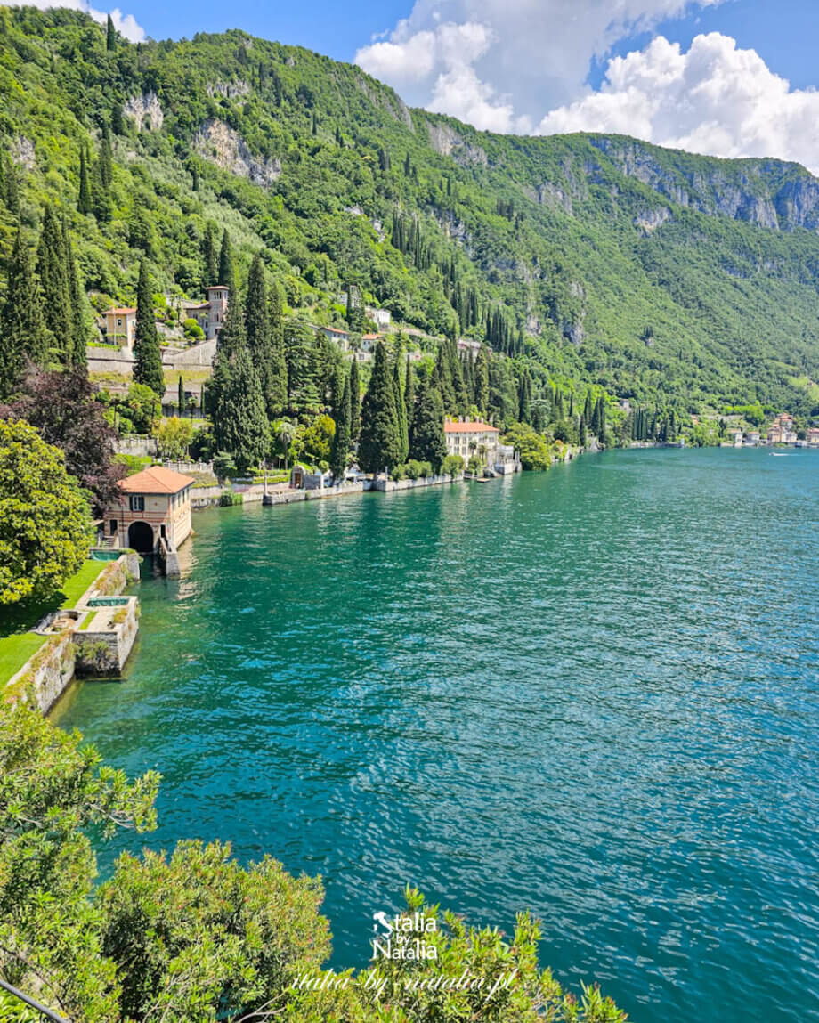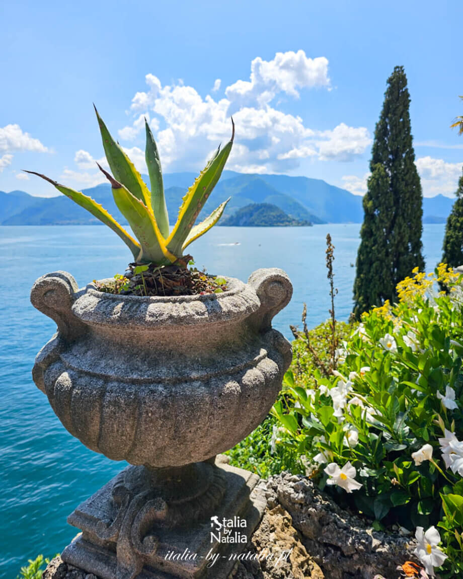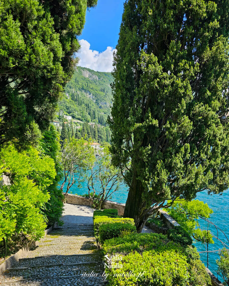 Villa Cipressi w Varennie pozostaje w cieniu sąsiadującej z nią Villi Monastero, choć skrywa jeden z najpiękniejszych zakątków nad jeziorem Como. Tarasowe ogrody opadają stromo ku niebieskiej tafli, a pomiędzy kolejnymi poziomami wiją się wąskie ścieżki, które raz prowadzą przez gęsty cień starych cyprysów, by za chwilę odsłaniać szerokie widoki na wodę i przeciwległe Bellagio. Odwiedziłam to miejsce w drugiej dekadzie czerwca, w piękny i bardzo ciepły dzień. Choć słońce prażyło mocno, spacer po ogrodach okazał się zaskakująco przyjemny, gdyż stare drzewa i bujna roślinność tworzą tu naturalny parasol cienia. Właśnie w takim miejscu przez stulecia powstawała jedna z najciekawszych rezydencji w Lombardii, której kuta z żelaza brama otwierająca się ku wodzie jest dziś jednym z najchętniej fotografowanych kadrów nad jeziorem.