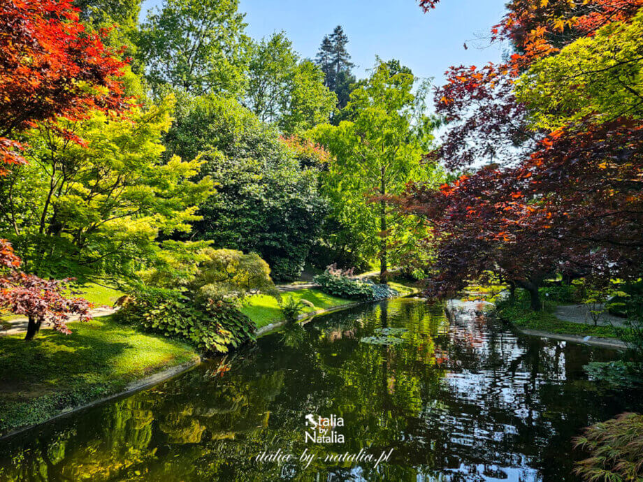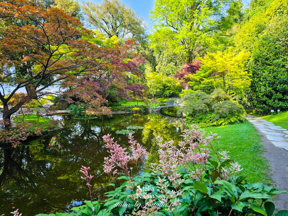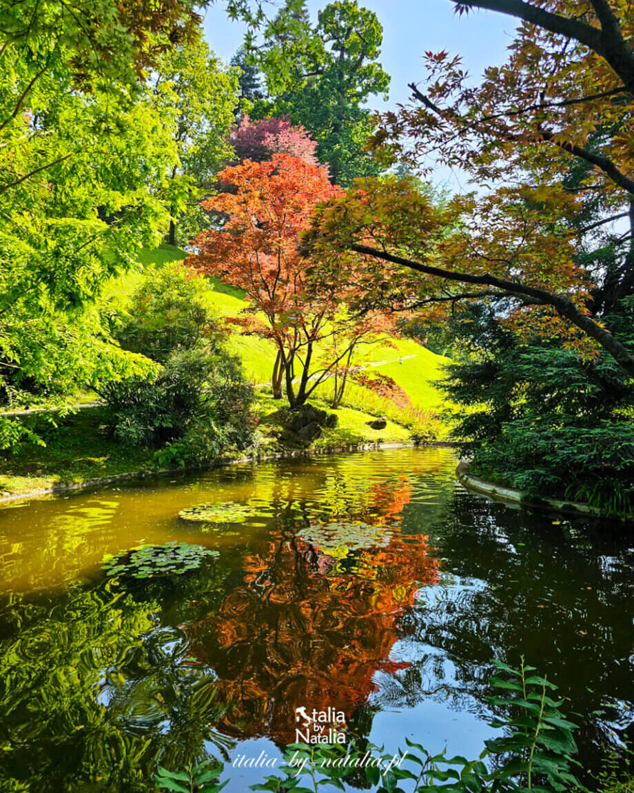 W Villi Melzi najlepiej widać to przede wszystkim przy niewielkim, ale jakże pięknym ogrodzie japońskim, ukrytym pomiędzy drzewami niedaleko wejścia do parku. Tworzy go kameralny staw przecięty łukową kładką drewnianą, otoczony egzotyczną roślinnością, który wprowadza zupełnie inny nastrój niż otwarte przestrzenie ogrodu nad jeziorem. Woda odbijająca liście drzew, wśród których dominują kolorowe klony japońskie, kamienne elementy kompozycji i spokojna atmosfera.