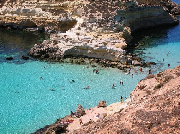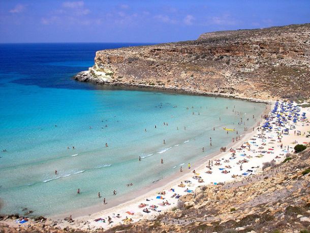 Cała Wyspa usiana jest wspaniałymi plażami, na których można zażywać kąpieli morskich i słonecznych. Niemniej jednak będąc na Lampedusie koniecznie należy dotrzeć na słynną i szeroko opisywaną w internecie plażę z białym piaskiem przy Isola dei Conigli, słynącej z niezwykle czystej i ciepłej wody. Jednym przypomina ona Karaiby, a innym skrawek niebiańskiej Polinezji. Plaża, jak i Wyspa Królików zlokalizowana są na południowym zachodzie wyspy. Na Isola dei Conigli dostać się można przez płyciznę mocząc nogi jedynie do kolan.